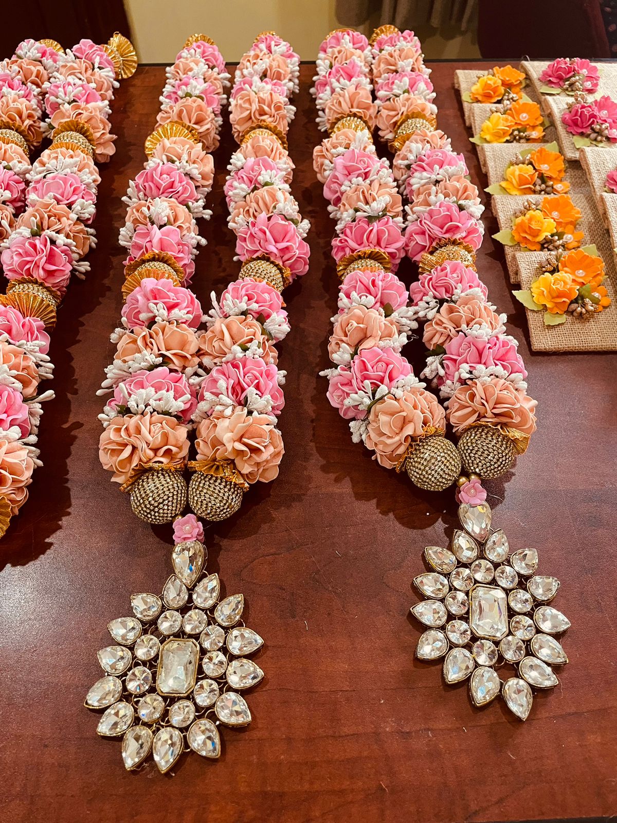 Varmala is an essential and very important part of any Indian marriage and a lot of care and detailing goes into making it. Our beautifully curated varmalas are completely handmade with our handmade foamiran flowers. The colours can be customised according to your dress colour.
