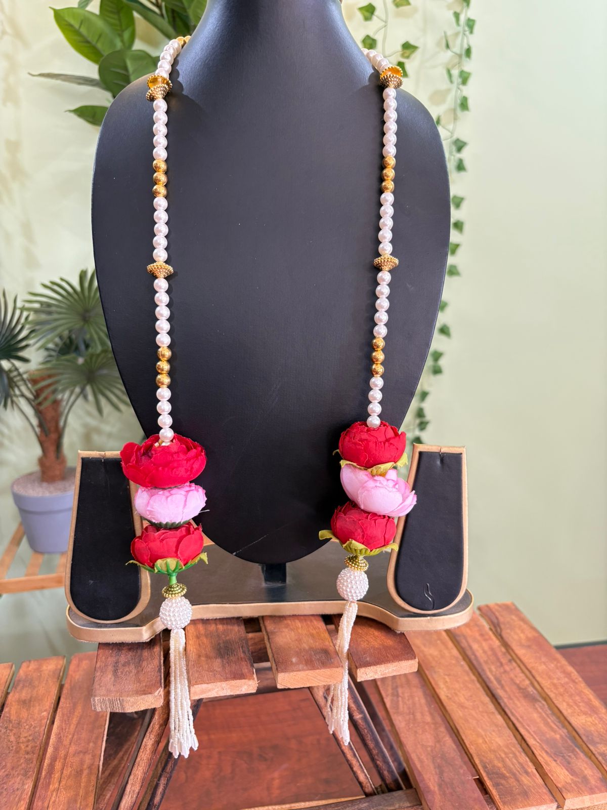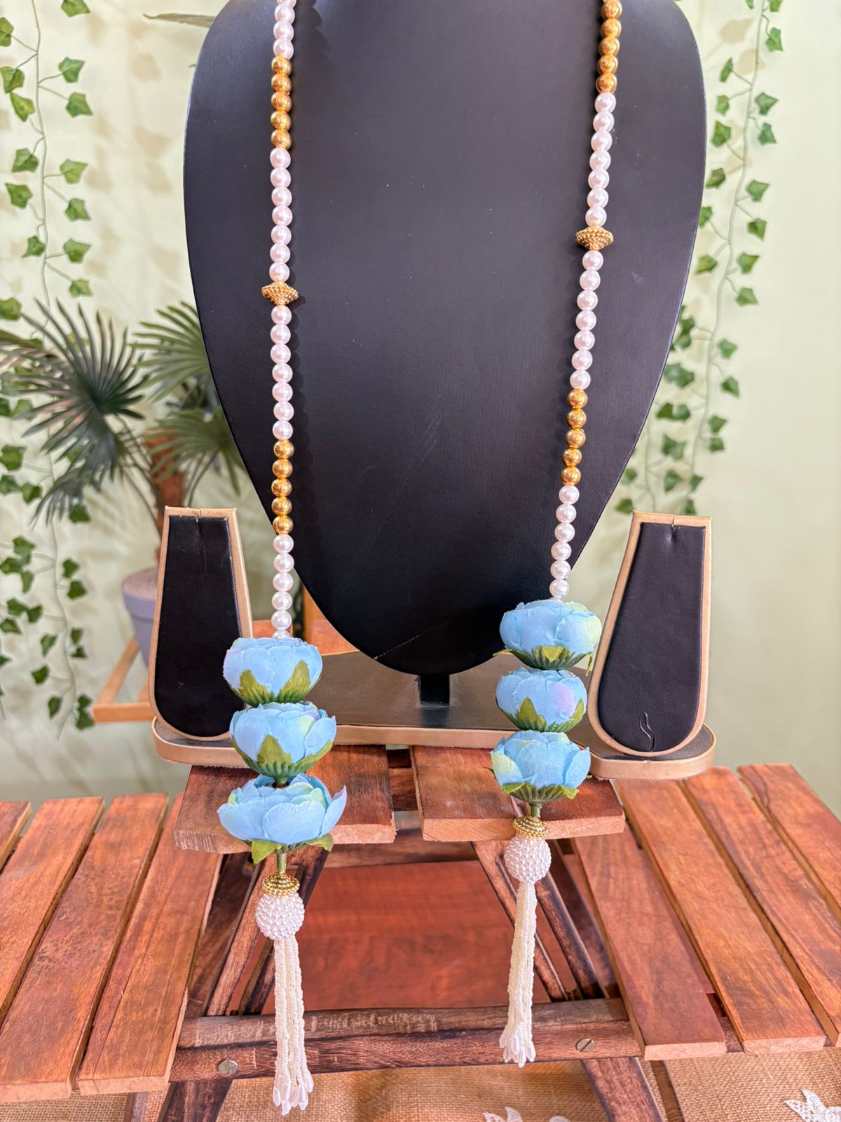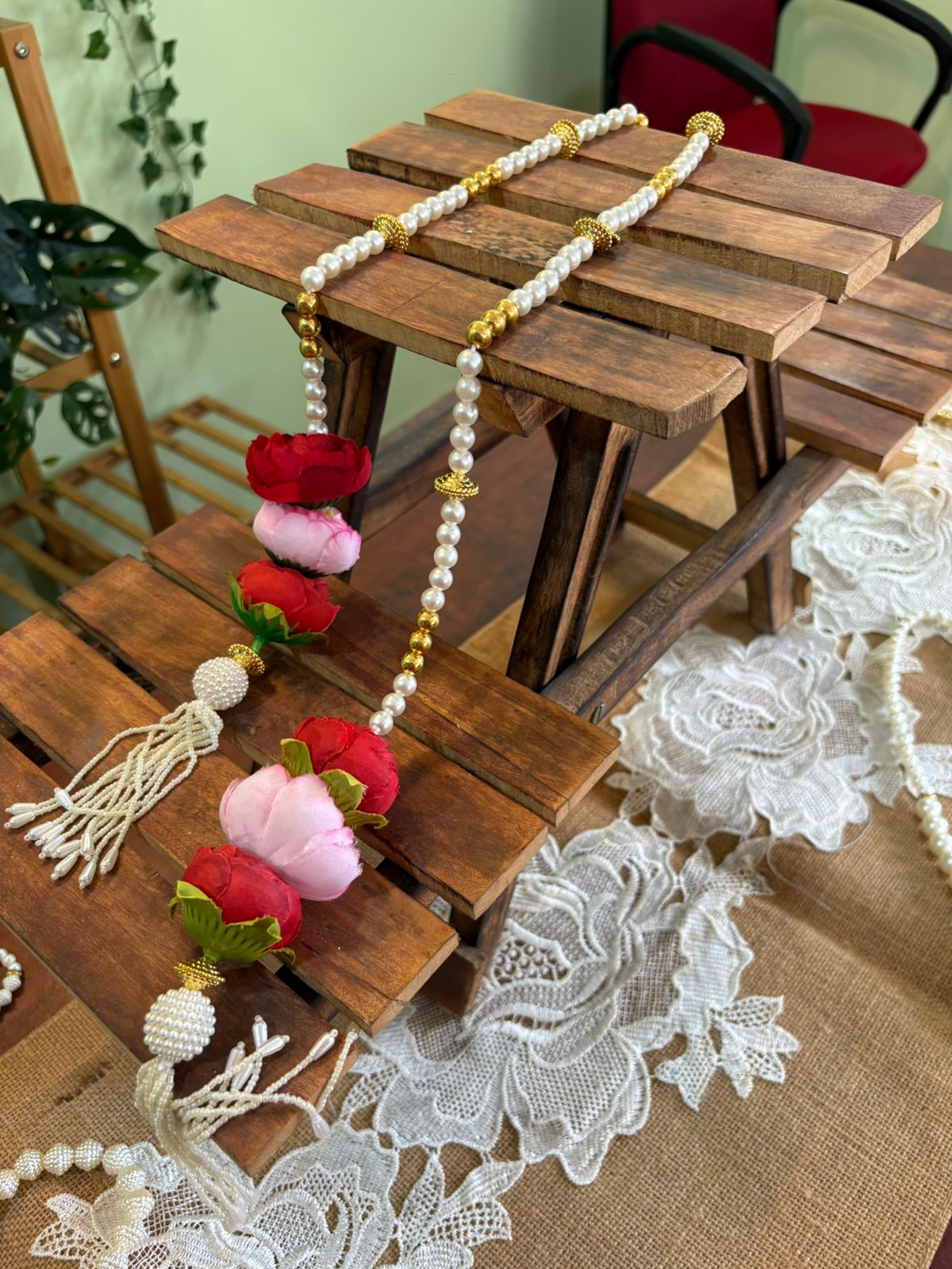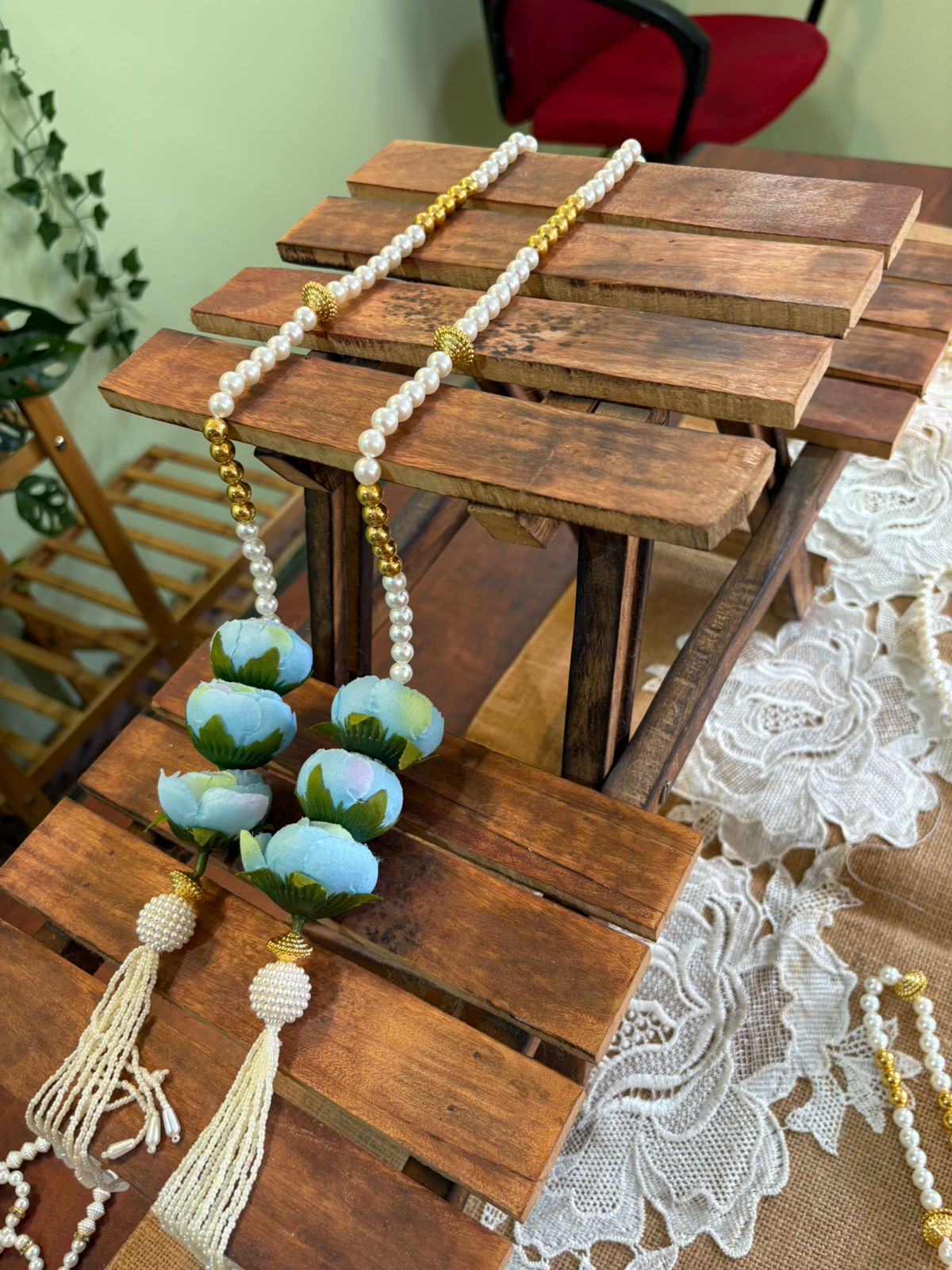Theses swagat maalas can be worn around the neck and look very beautiful with heavy latkans and flowers given. This one is like a scarf so can be worn very easily and look stylish