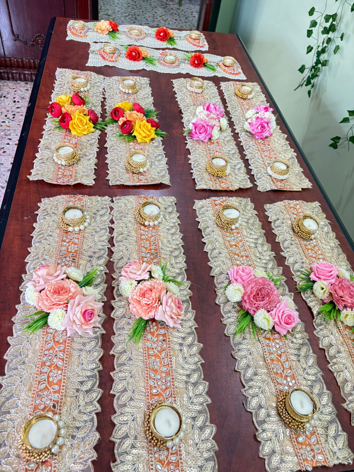 These are fancy beautiful table runner mats which can be placed on the table or side tables. they can be used as rangolis also or for any kind of decor enhancement.