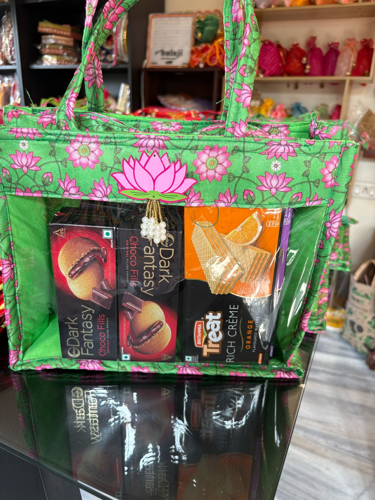 These Are Hamper Bags With A Transparent Middle Which Makes Them Look Smart And Different Specially When You Are Planning To Give Some Food Giveaways To Your Guests. Easy To Carry With The Handle And You Can See Whats Inside. They Have A zip for closure which makes your stuff inside safe as nothing will fall.
